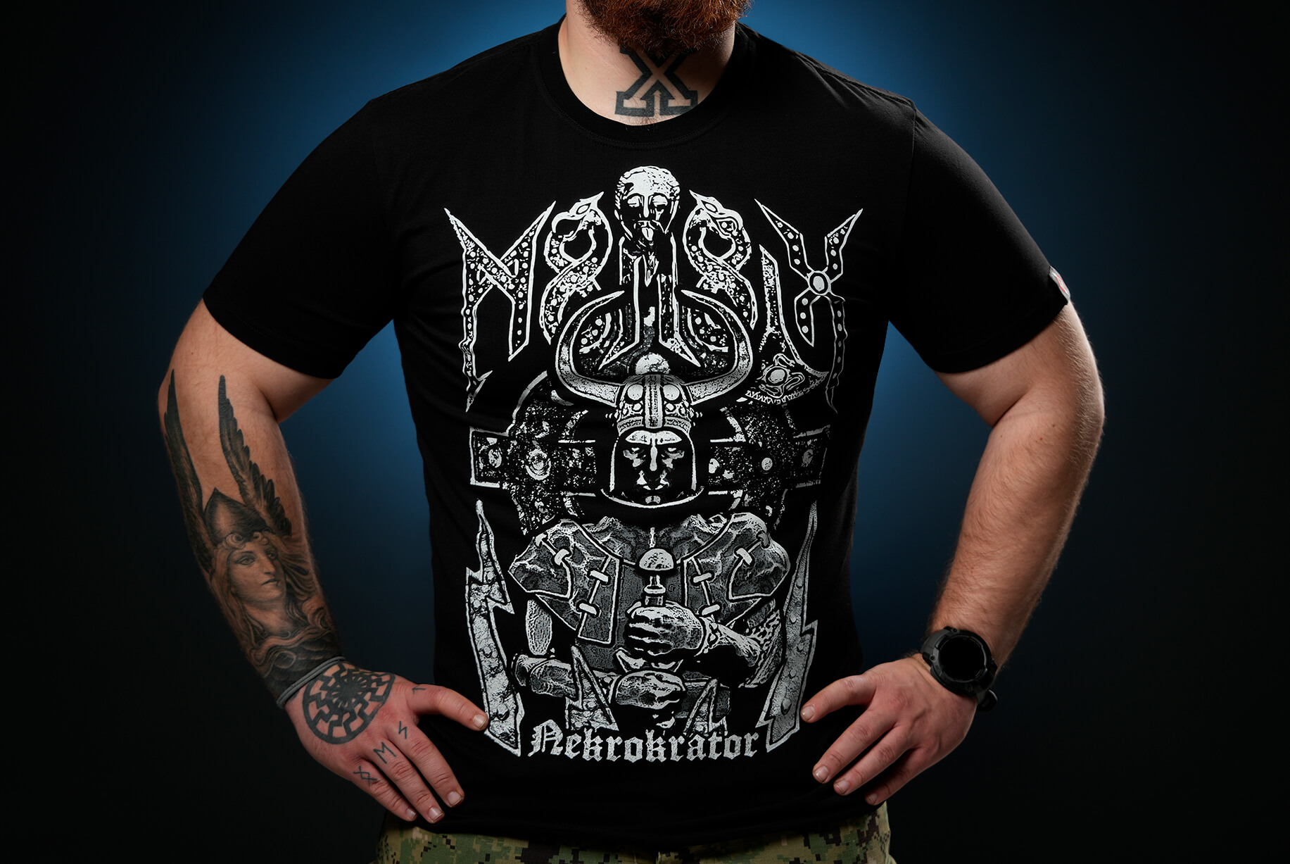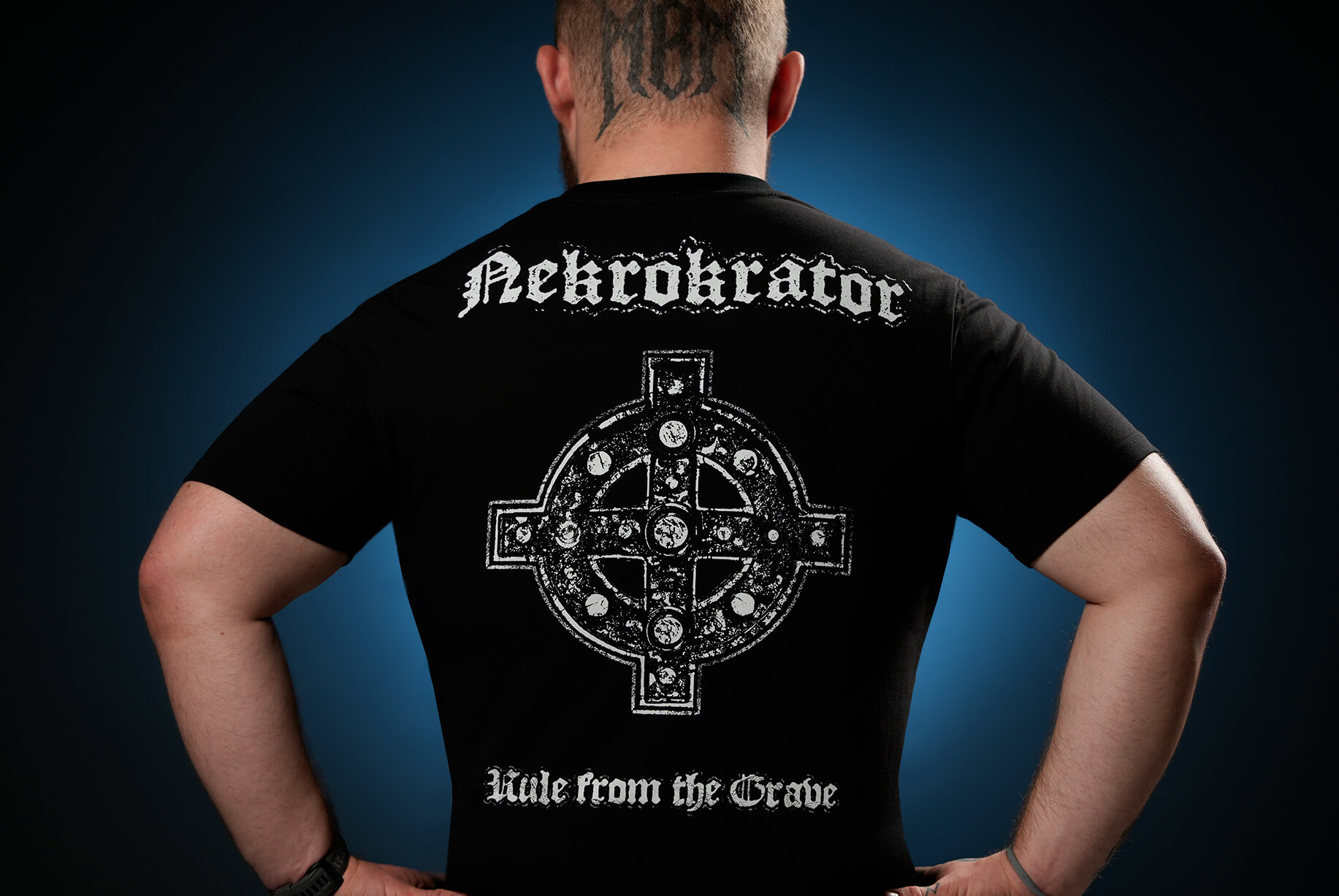 His gaze is motionless, like eternity, and his hands still clutch the symbol of power- the weapon. He is not dead, but he rules over the dead.