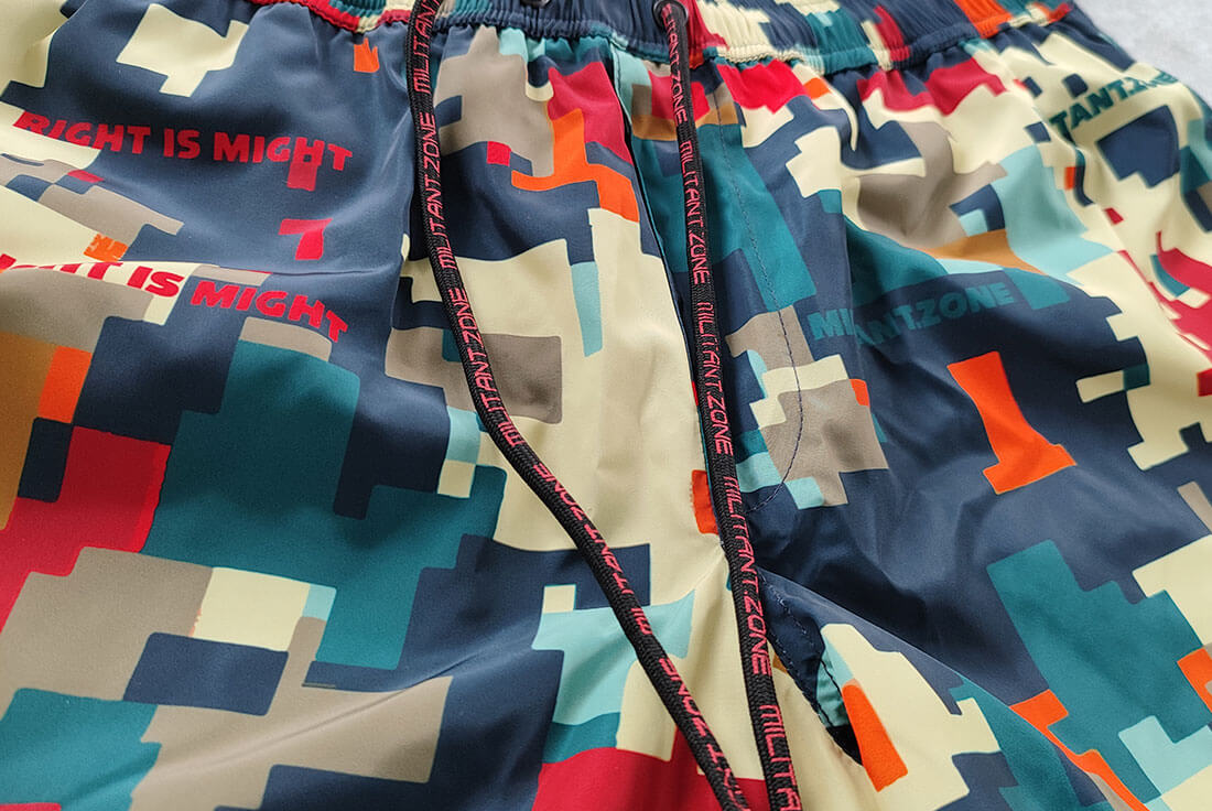 PIXEL CHAOS SWIMSHORTS — branded pixel from MZ for the hot season.